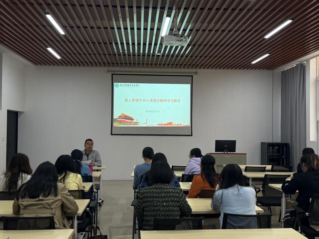 为深入学习贯彻中央八项规定精神,不断强化作风建设,3月27日,公共教学部举办深入贯彻中央八项规定精神学习教育。公共教学部部长徐洪主持,全系教师参会。