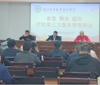 活动简讯:2023年4月3日,学院召开食堂、物业、超市学院第三方服务管理例会,会上强调校园环境的重要性,要求各服务单位提供干净整洁的学习、工作、生活环境,同时要求各单位加强人员管理与人员培训,以校为家,爱护校园的一草一木。