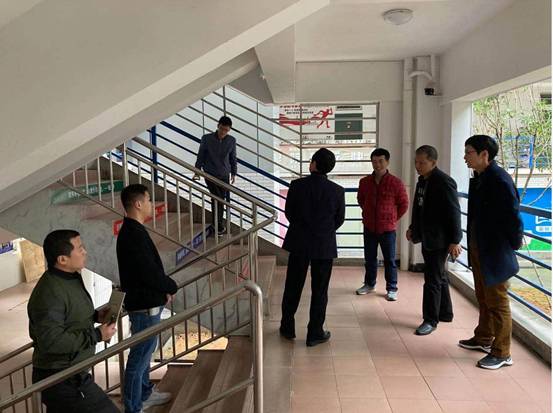 在工地检查中,林书记指出要充分考虑工地施工封堵与学生进出校边门的安全问题,并做好学生的引导工作。