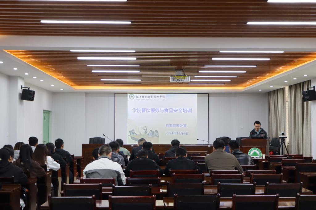 为强化学院餐饮安全保障,提升后勤餐饮服务质量,2024年12月6日上午学院组织举办了学院餐饮服务与食品安全培训活动,学院后勤相关老师、食堂超市负责人及院膳食部学生干部参加此次会议。