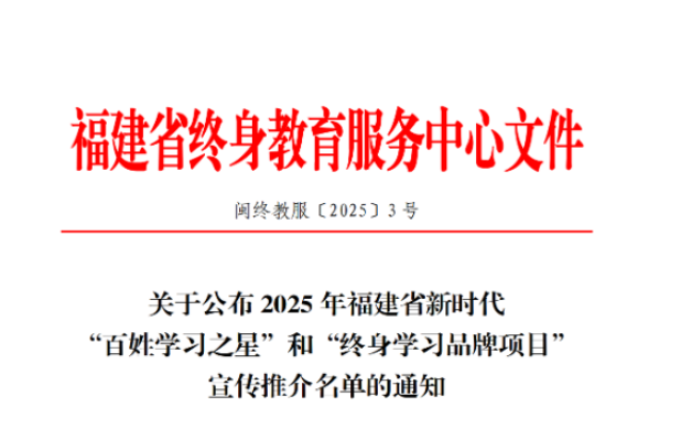2025年福建省新时代“终身学习品牌项目”宣传推介名单