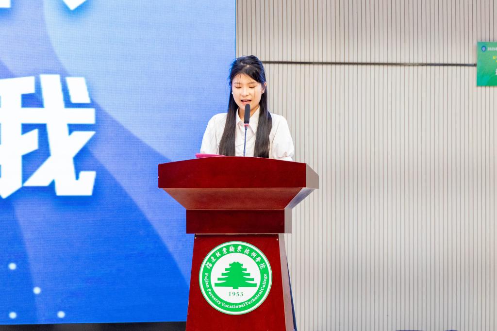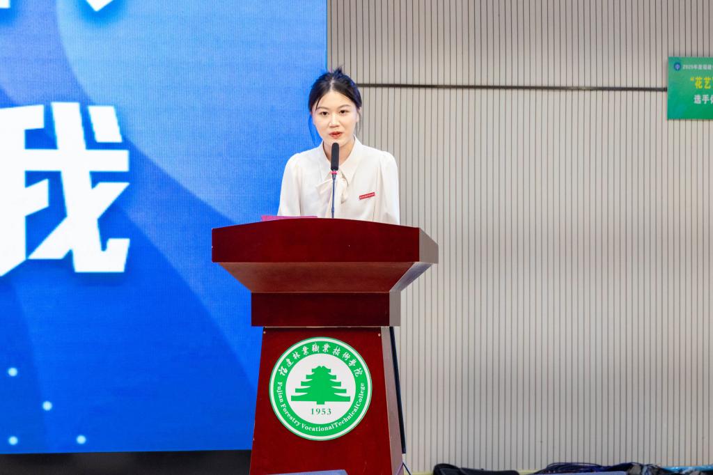 参赛学生代表、2025年省赛一等奖获得者詹海珍作表态发言。她表示学院举办技能文化活动月给同学们提供了一个良好的学习交流平台,希望同学们能以本次技能活动月作为技能学习的又一新起点,在校园浓厚的技能文化中抒写砥砺奋进的青春华章。