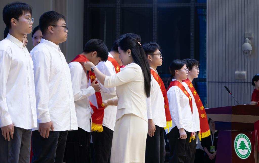 院党委委员、纪委书记詹其仙,院党委委员、组织部(统战部)部长李霞,院党委委员、宣传部部长、马克思主义学院院长邹小燕分别为获得2025年福建省技能大赛一等奖同学绶带。