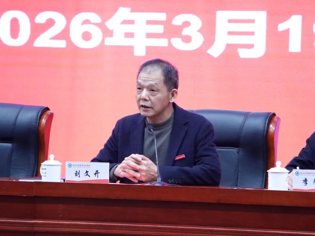 本网讯 3月19日下午,学院在江南校区图书馆学术报告厅召开2026年全面从严治党工作会议。会议深入学习贯彻习近平总书记在二十届中央纪委五次全会上的重要讲话和全会精神,全面落实省纪委十一届六次全会、省政府廉政工作会议以及2026年全国、全省教育系统全面从严治党工作视频会议部署要求,系统总结学院2025年全面从严治党工作,安排部署2026年全面从严治党重点任务,推动学院全面从严治党向纵深发展。学院全体教工党员、副科级及以上干部参加会议。会议由党委副书记、院长刘文开主持。