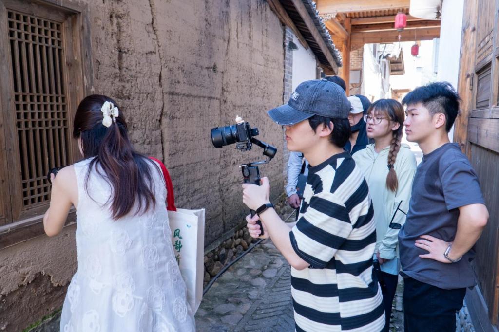 队员们在带队指导老师叶章球副书记和廖士喜老师的带领下,运用专业设备对山庄内景、房间陈设及周边自然风光进行多角度取景,拍摄素材全方位展现了山庄“生态+休闲+团建”的复合型文旅特色。此外,该素材也将用于剪辑山庄文旅宣传片,进一步引导学生利用专业优势助力乡村旅游的高质量发展。