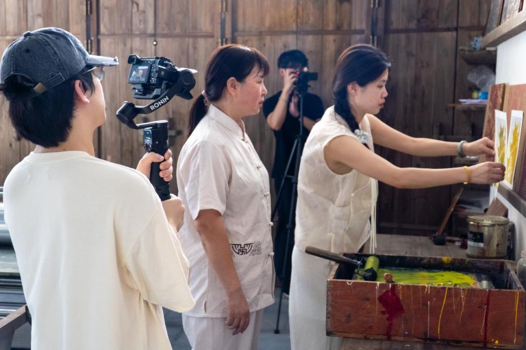 在前期对松溪文化详细调研的基础上,7月1日下午至7月2日上午,志愿服务队邀请松溪版画传承手艺人与宣传片主角前往“刀木之音”松溪版画作品展以及松溪版画生活院进行拍摄,师生们利用摄影传媒作为宣传载体,融入新时代青年力量,助力松溪文化走向新兴舞台。