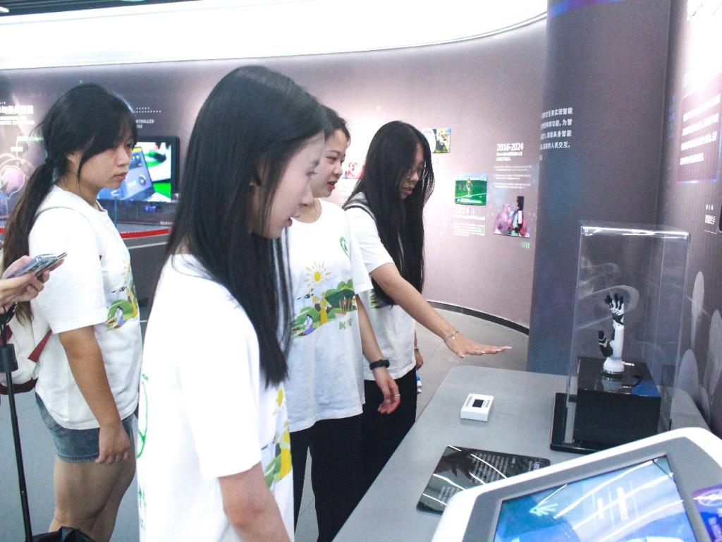 在泉州市科技馆的科技体验区,实践队员通过体验深海探测器的模型与影像、人工智能交互系统等项目的基础原理,学习前沿技术的应用,真切感受到每一项科技成果的重点是切实把“科技是第一生产力、人才是第一资源、创新是第一动力” 的丰富内涵落地落实。