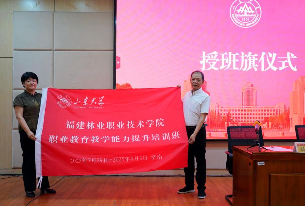 本网讯 2025年7月30日上午,福建林业职业技术学院职业教育教学能力提升培训班开班式在山东大学继续教育学院举行。山东大学继续教育学院党委书记姜文丽,福建林业职业技术学院院长刘文开、党委副书记严绍裕、纪委书记詹其仙、副院长黄晖、副院长李肇锋等参加开班式。开班式由山东大学本次培训项目负责人李新睿老师主持。我院副处级干部、正高级职称专业技术人员、高层次人才、教师教学创新团队成员、专业带头人及骨干教师等93人参加了此次开班式。