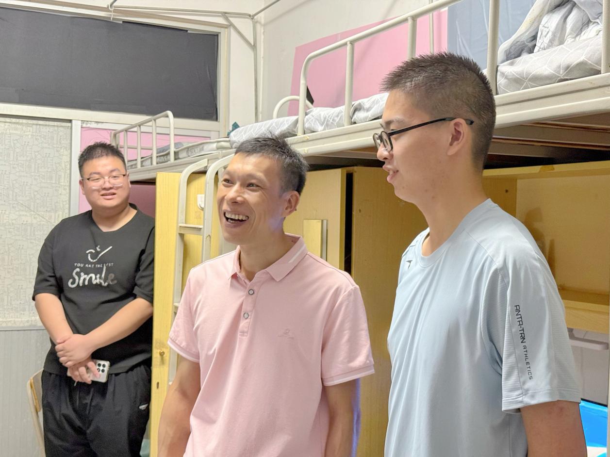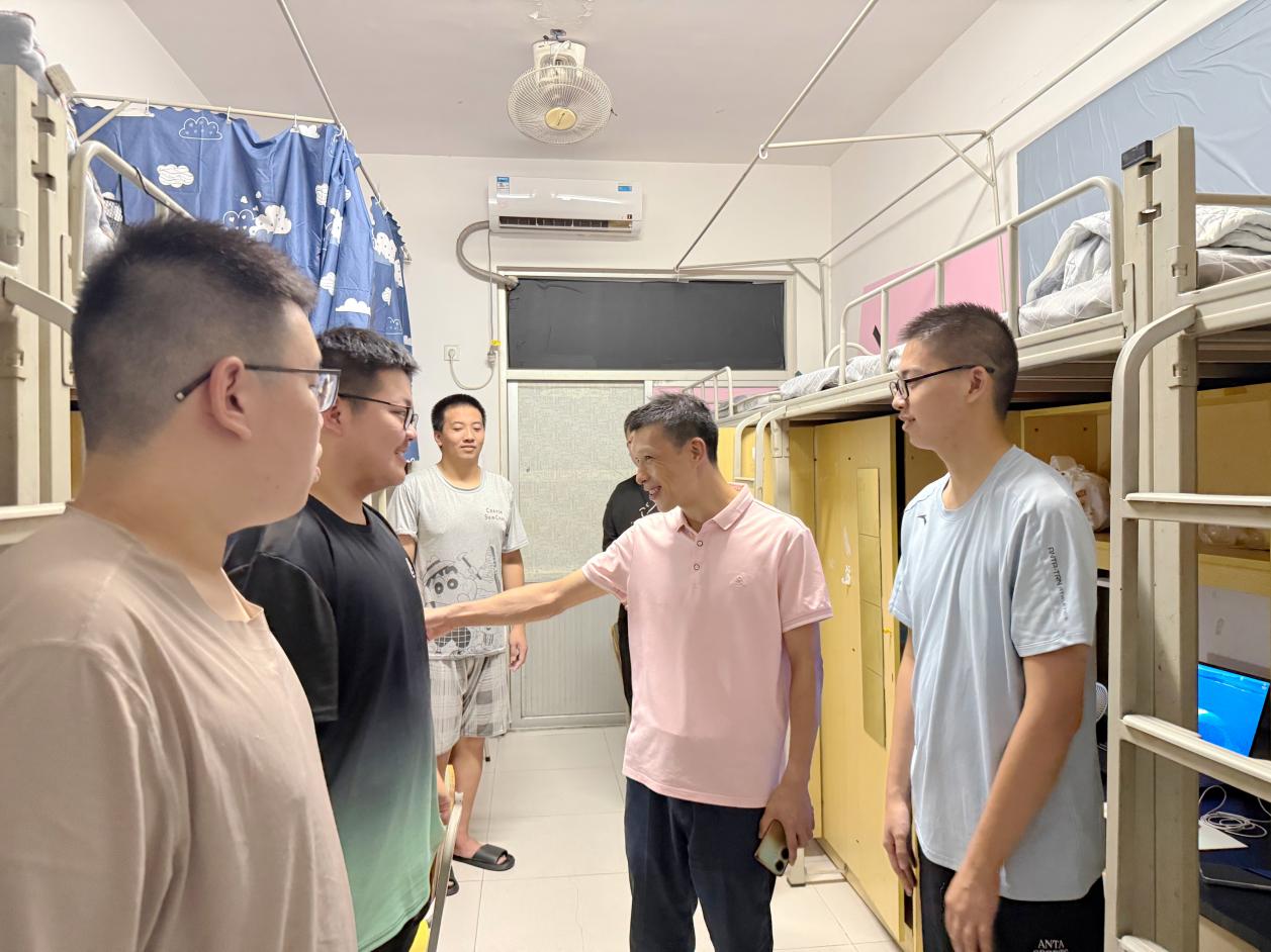 在走访过程中,詹其仙一行走进宿舍仔细查看新生的住宿环境,从床铺设施、水电供应到卫生状况,逐一细致询问,确保同学们的生活需求得到保障。