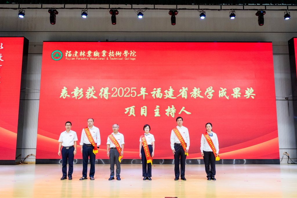 据统计,我院教师在2025年福建省职业院校技能大赛中获得一等奖14项、二等奖11项、三等奖22项;2025年福建省职业院校教学能力相关赛事中斩获一等奖1项、二等奖5项、三等奖4项;福建省大学生创新大赛中获得职教赛道金奖3项、银奖3项;2025年福建省教学成果评选中斩获一等奖2项、二等奖3项;共有57位教职工分别被评为院级优秀教师、优秀教育工作者和优秀辅导员。会上,院领导为获奖代表颁奖,并勉励获奖者再接再厉,再创佳绩,再立新功。