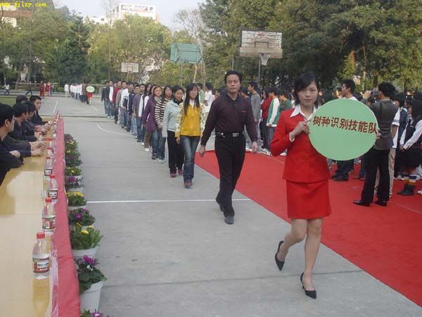 艺术插花、园林规划设计、园林工程设计、计算机辅助设计、组织培养接种、导线测量、树种识别、中餐宴会摆台、网页制作、数据库应用系统开发、工程测量、市政工程预算软件开发、会计务实操作、会计电算化操作等14支技能竞赛代表队踏着整齐的步伐先后步入会场。本次技能竞赛由四个系的03级同学志愿报名参加,有近360人参赛,历时9天。