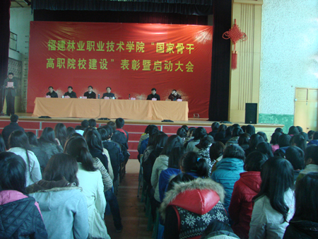 福建省林业厅党组成员、纪检组长黄文书作了重要讲话。他指出,去年11月,学院被教育部、财政部正式确定为“国家骨干高职院校”立项建设单位,进入了全国首批40所国家骨干高职院校行列,这既为福建高职教育争得了荣誉,也为全省林业系统争了光。