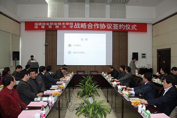 在签约仪式上,林思祖副校长和郑郁善院长分别代表福建农林大学和福建林业职业技术学院签约。签约仪式结束后,双方有关部门领导进行了座谈交流。(党办、院办)
