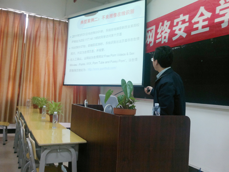 2012年4月21日下午,西安交通大学计算机系主任郑庆华教授到我院作了题为“不良网络文化内容检测与舆情分析技术”的网络信息安全专题学术报告。自动化工程系负责人谢金生副教授主持了报告会,自动化工程系相关专业老师、学生聆听了报告。