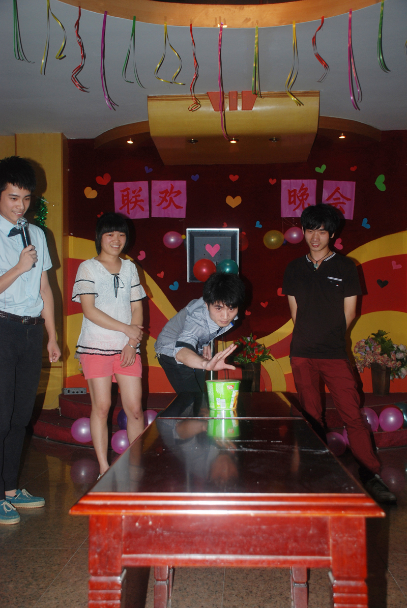 最后举行了2012届毕业生欢送晚会。晚会节目异彩份呈,既有好听的歌曲、搞笑的双簧、激昂的诗歌朗诵,还有令人捧腹的英语小品,整场晚会高潮迭起。