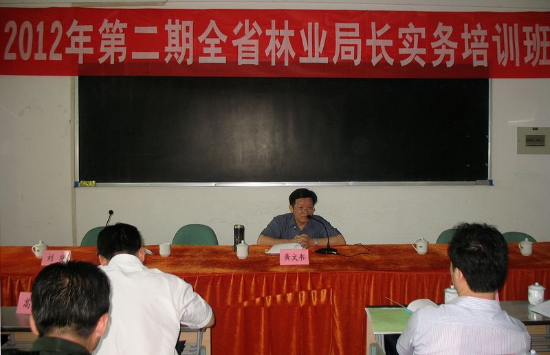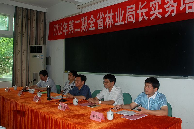 7月16日,2012年第二期全省林业局长实务培训班在我院举行。省林业厅党组成员、驻厅纪检组组长黄文书,厅人事教育处副处长潘清云,院党委书记徐志荣,院长郑郁善,党委副书记、纪委书记刘明参加了培训班开班式。开班式由刘明副书记主持,郑郁善院长代表学院致辞,潘清云副处长宣布了本期培训班的班干部组成人员名单。开班式上黄文书组长就举办培训班的目的意义、学员的学习纪律要求等作了重要讲话。来自全省35个县(市、区)林业局局长、学院正科级以上干部参加了开班式。
