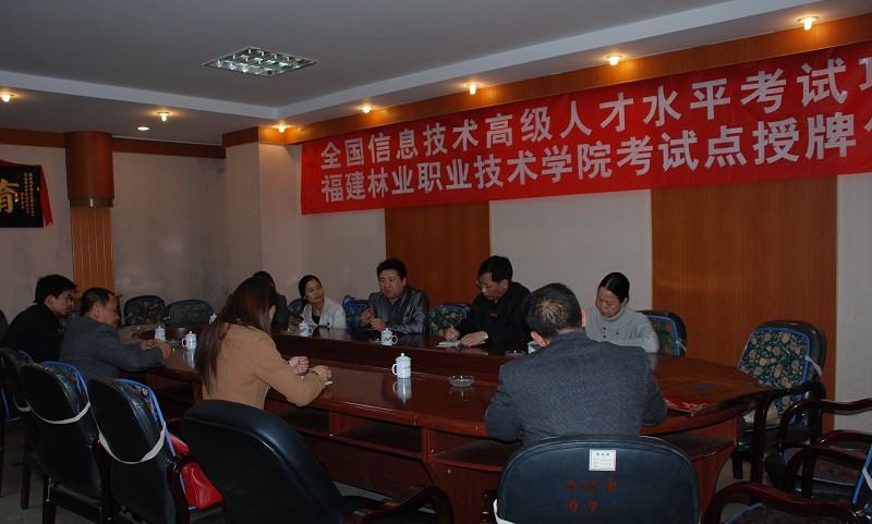 本网讯 4月10日下午,全国信息技术高级人才水平考试项目福建林业职业技术学院考试点授牌仪式在我院天麟校区3楼会议室举行。全国信息技术高级人才水平考试福建省管理中心主任林华光一行、我院副院长王振亮、教务处、成教处相关教师出席了仪式。仪式由王副院长主持。