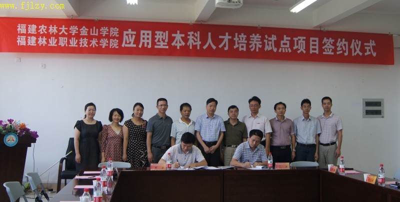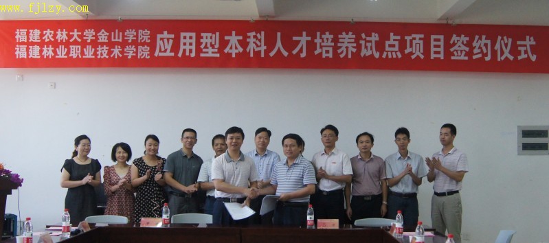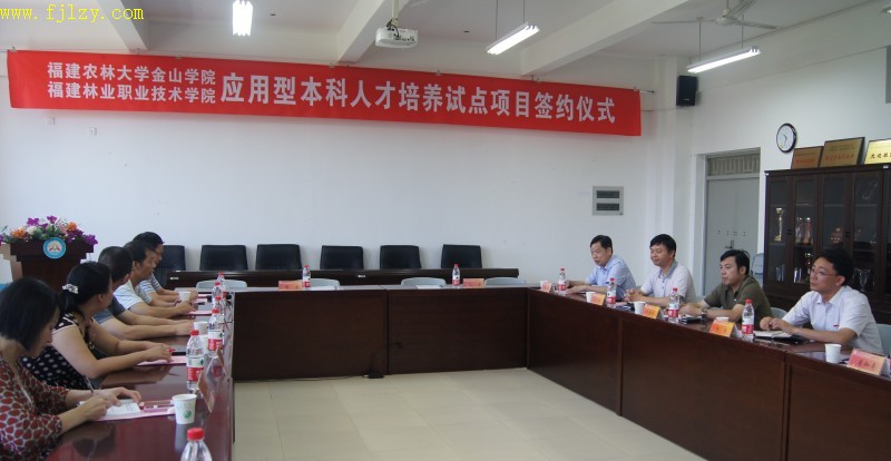 本网讯 7月17日上午,我院与福建农林大学金山学院联合培养四年制应用型本科签约仪式在福建农林大学金山学院会议室隆重举行。签约仪式由福建农林大学金山学院常务副院长兼党委副书记郭文硕主持。出席签约仪式的领导有福建农林大学副校长、金山学院院长黄一帆,福建农林大学金山学院副院长郑国华、洪涛以及我院院长郑郁善、副院长刘文开等。