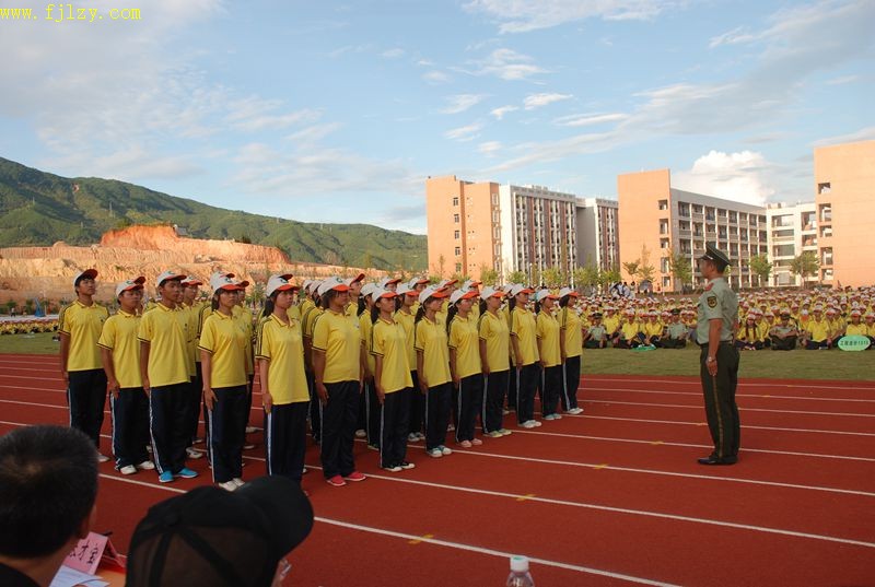 本网讯 9月13日下午,学院在江南校区田径场举行2013级新生军训汇报表演。参加此次军训汇演的有:武警部队南平市森林支队副参谋长刘德成,武警部队南平市森林支队南平大队教导员张才宝,学院纪委书记章志勇,副院长王振亮,副院长严绍裕,院长助理、学生处处长郭先根,人文社科系主任、党总支书记成榕,学生处副处长谢福荣,资源环境系党总支副书记姚平生,土木工程系党总支副书记王云彪,经济管理系党总支副书记张毅,自动化工程系办公室主任、学工组长黄立靖,担任本次军训的武警部队南平市森林支队的所有教官,2013级江南校区所有新生和天麟校区部分新生。军训汇演由学生处副处长谢福荣主持。