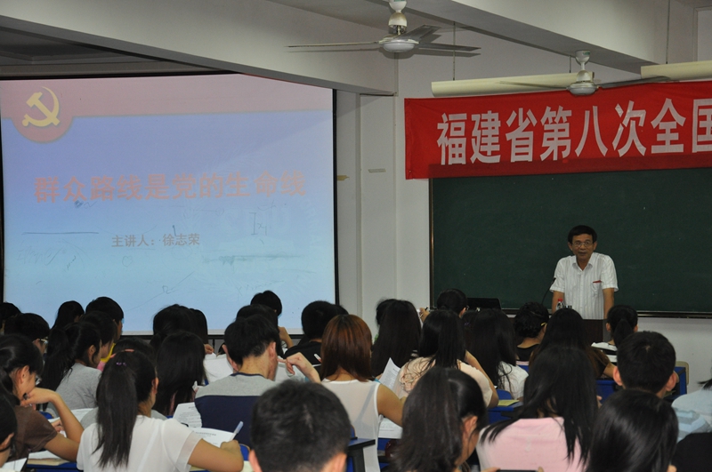 本网讯 6月4日和6月5日晚,学院党委书记徐志荣为党校第36期入党积极分子培训班学员作题为《群众路线是党的生命线》的专题讲座,讲座分天麟校区和江南校区两场。徐书记从坚持群众路线是党的政治优势、党的群众工作面临的新挑战等几个方面,对群众路线是党的生命线进行了深度的解读,并结合实际对广大学员提出了两点要求:一是用正确的世界观、人生观、价值观来树立正确的群众观;二是以为民、务实、清廉的精神来发扬和广大“敬业、吃苦、务实、进取”的天麟精神。讲座结合时政,深入浅出,得到学员们的好评。(文/图:邹小燕/黄泽宇、沈静)