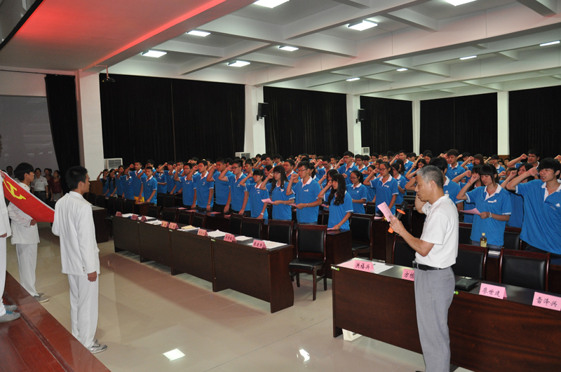 激昂的国歌声拉开了本次大会的序幕,刘明副书记宣读了《关于2014年上半年发展党员的批复》。宣读完毕后,大会举行了新党员入党宣誓仪式。在学院党委办公室主任洪福兴同志的领誓下,全体新党员面向党旗,庄严宣誓。