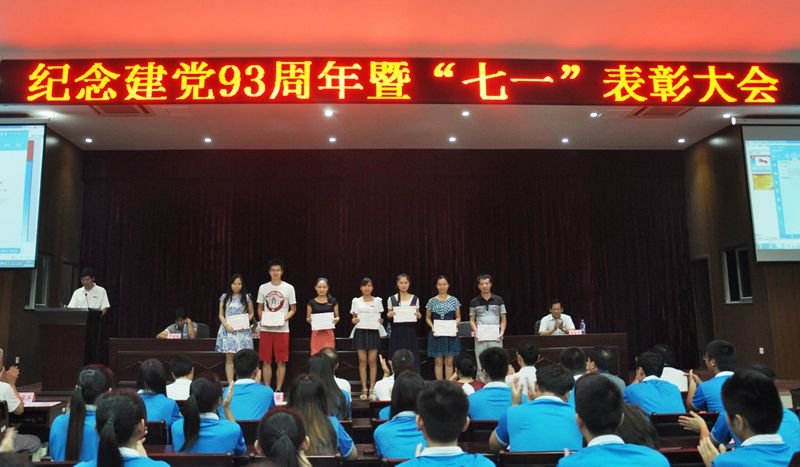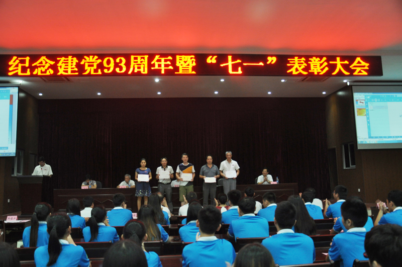 本网讯 6月30日晚,学院在江南校区第三食堂四楼会议室召开纪念建党93周年暨“七一”表彰大会。学院在家党政领导,全体师生党员,副科级以上干部,受表彰的集体代表和个人共计300余人参加了大会。院党委副书记刘明主持大会。
