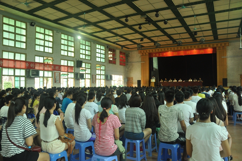 本网讯 9月9日,学院2014级新生开学典礼分别在江南校区田径场和天麟校区礼堂举行。学院党委书记徐志荣,党委副书记刘明,纪委书记章志勇,副院长王振亮、刘文开、严绍裕,院长助理郭先根以及学院各系负责人和新生辅导员出席了开学典礼。典礼由党委副书记刘明主持。