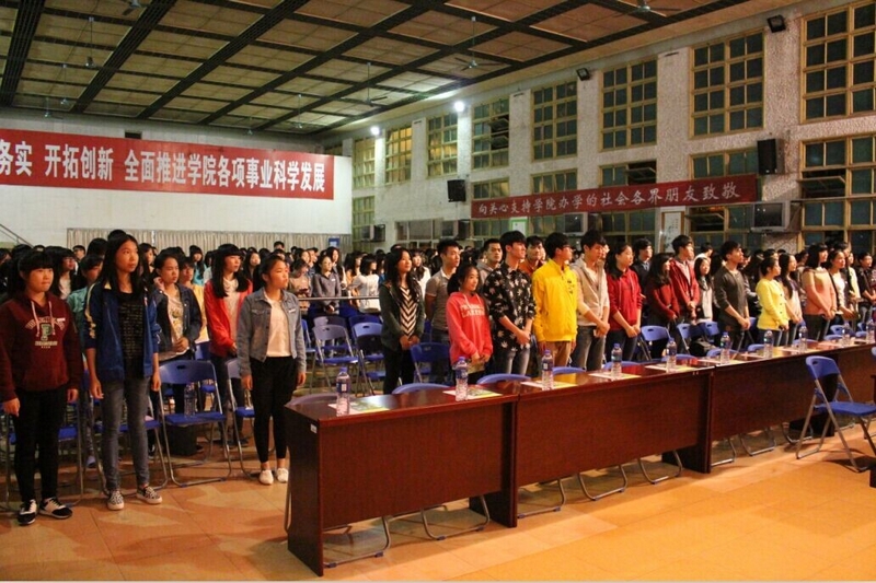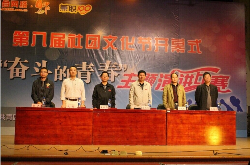 本网讯 2014年11月10日晚7时,学院第八届社团文化节开幕式暨“奋斗的青春”主题演讲比赛在天麟校区礼堂举行。学院党委书记徐志荣、副院长王振亮、院长助理郭先根、人文社科系主任成榕、人文社科系党总支副书记俞雄辉、学生处副处长徐洪参加了开幕式。会议由团委副书记李霞主持。