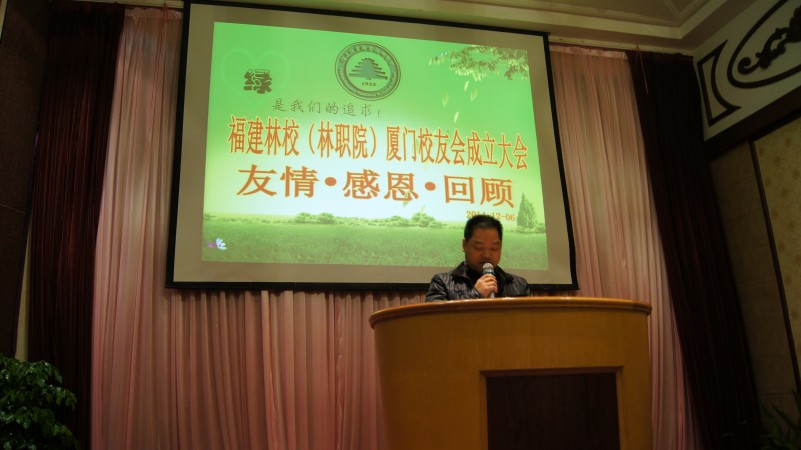 12月的鹭岛厦门,生机盎然,热情似火。12月6日晚上,厦门金威大酒店宝丽厅宾朋满座,校友云集,福建林业职业技术学院(原福建林业学校)厦门校友会成立大会在火热的氛围中隆重举行。福建林业职业技术学院党委书记徐志荣,副院长王振亮,原福建林业学校校长林威,原福建林业学校副校长、福建林业职业技术学院原副院长苏孝同,福建林业职业技术学院招生就业办公室主任黄丽霞,院长办公室副主任陈政等领导和老师,以及在厦工作的100余名校友代表参加了成立大会。会议由会计0925班校友周华杰主持。