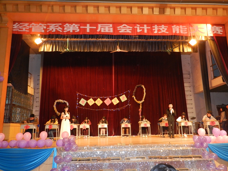 本网讯 2014年12月2日晚7点30分,由经济管理系社团部举办的“经济管理系第十届会计技能大赛”决赛在天麟校区院礼堂如期举行。经济管理系党政领导、会计类专业教师、2014级新生及辅导员近600人到场观看比赛。