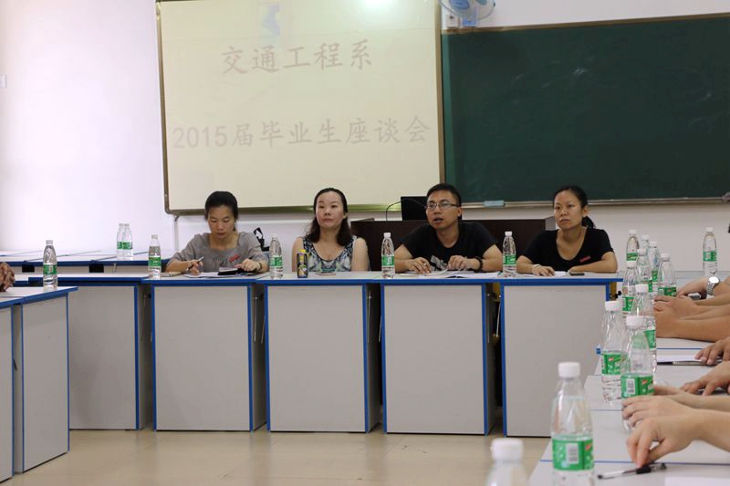 本网讯 6月22日下午,交通工程系在实训一709室举行2015届毕业生座谈会。系党总支副书记徐洪、学生科长薛莉、毕业生辅导员陆晓莉和陈静及30多位来自不同班级和专业的毕业生代表参加了本次会议。会议由系党总支副书记徐洪主持。