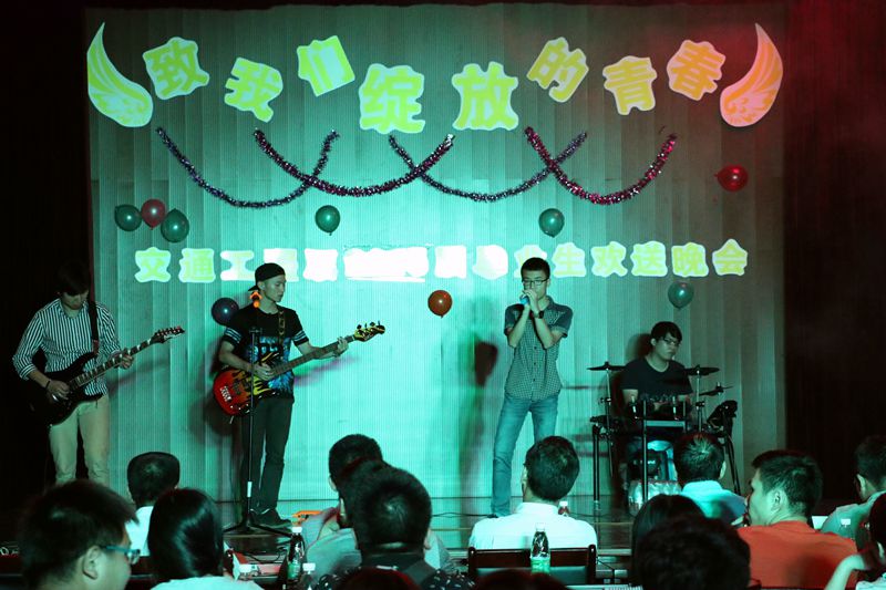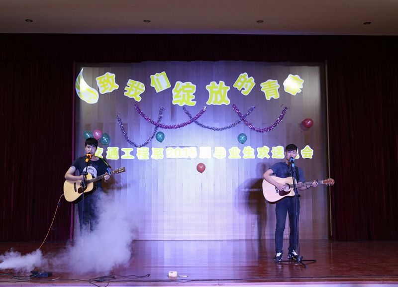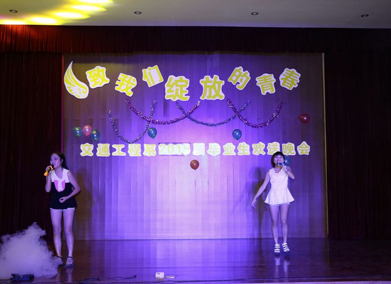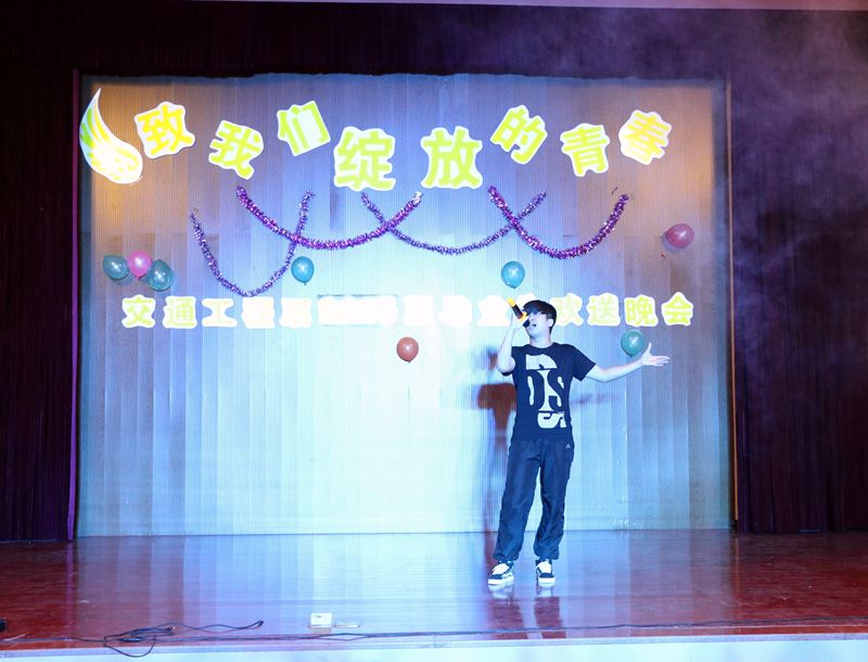 一首由“再见理想乐队”带来的《光辉岁月》拉开了晚会的序幕。接着,交通工程系主任孙华为晚会致辞,为毕业生们送来了满满的祝福和沉甸甸的祝愿。整场晚会节目精彩纷呈,劲爆有力的爵士舞、激情四射的肚皮舞点燃了全场观众的热情;由南平江滨小学陈昀小朋友带来的《唱着山歌去飞翔》博得在场观众的阵阵掌声;院十佳歌手们带来的《不将就》、《彩色的黑》、《天下》、《平凡之路》等歌曲寄托了对毕业生的祝福与情意;由系两委会学生带来的舞蹈《小苹果》展示了大学生的活力与风采;配乐朗诵《毕业》让在场的学生湿了眼眶,将晚会推向了高潮……最后,晚会在师生合唱《明天会更好》的旋律中,圆满落幕。