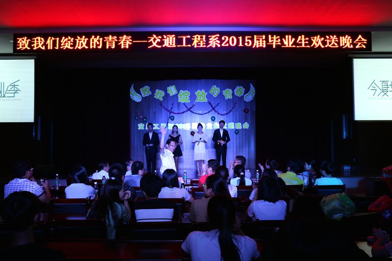 本网讯 时光荏苒,岁月如梭,2015届毕业生即将离开林职院的校园。为表达对他们的美好祝福和殷切希望,让毕业生再次感受学院大家庭的温暖和美好的回忆,6月23日晚,交通工程系举办了以“致我们绽放的青春”为主题的2015届毕业生欢送晚会。学院副院长王振亮,院长助理郭先根,交通工程系副主任孙华(主持工作)、副主任宋晓东、党总支副书记徐洪、学生科科长薛莉和交通工程系部分老师与2015届毕业生一同观看了晚会。