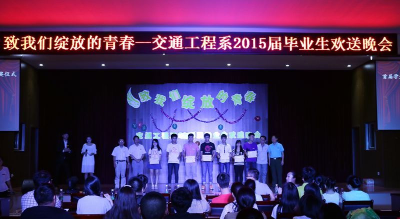 为了树立典型,鼓励先进,营造更加优良的学风,晚会过程中,还进行了交通工程系首届学生专业技能活动月颁奖仪式,王副院长、郭助理、孙主任,宋老师上台为获奖选手颁奖。获奖选手代表们在现场对参加此次活动发表了感想,也对毕业生送去了祝福。