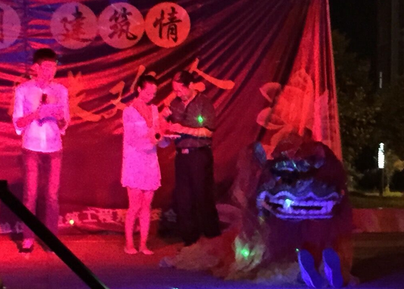 在充满青春活力的街舞队表演后,由建筑工程系建筑1326班吴起明带领的武术队两只雄狮静卧在舞台中央,院长助理郭先根老师带着对15级新生开启崭新大学生活的美好祝愿上台为两只雄狮进行“点睛醒狮”仪式,启动了建筑工程系中秋国庆假期系列活动。接着来自建筑1440班的沈达明等同学用一场名为《成长》的音乐短句,演绎了离家在外求学的孩子与在家守候父母之间浓浓的相思之情,呼唤在外的学子如今便捷的通讯和高铁拉近了家的距离,要常打电话回家、要常回家看看。15级新生陈何静、石林辉等同学也纷纷展示各自特长,用舞蹈、歌曲等表演与同学们共庆中秋。