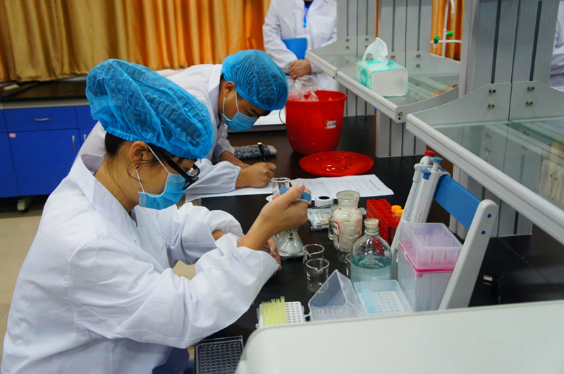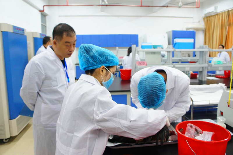 本网讯 2016年1月6日,福建林业职业技术学院学生技能大赛《新城疫抗体测定》项目竞赛总决赛在我系森林植物分子生物技术实训室顺利举行。本竞赛项目邀请福建农林大学动物科学学院马玉芳教授、福建省农业科学院畜牧兽医研究所书记庄向生研究员、福清市畜牧兽医中心谢美辉高工担任裁判。比赛过程,2人为一组,每组参赛队在规定的3小时内完成家禽采血、1%红细胞悬液制备、血凝实验、4单位抗原配制、血凝抑制实验和实验结果报告六个方面比赛内容。比赛过程中,选手们配合默契,操作认真有序,经过紧张、激烈的角逐,比赛圆满结束。