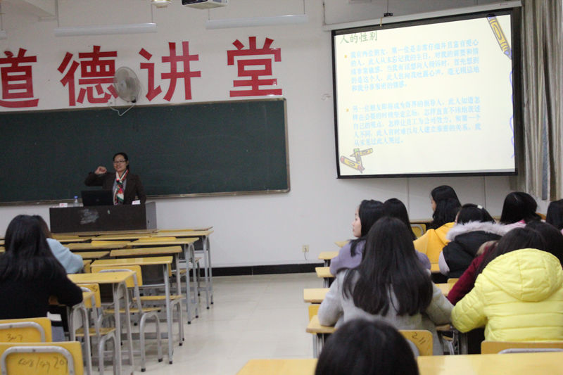 本网讯 3月3日晚, 3.7女生节系列活动之女大学生心理健康讲座在江南校区实训四210热烈开讲。学院心理咨询中心主任陈红英老师为大家带来了题为“做健康快乐的女生”的精彩讲座。