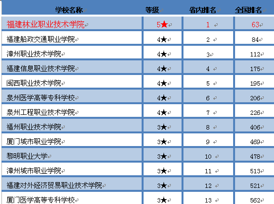 福建省进入全国600强高职院校排名情况