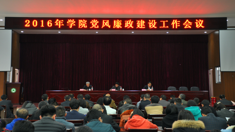 本网讯 3月29日,学院在江南校区三食堂4楼会议室召开2016年党风廉政建设专题会议,全体党员及副科级以上干部参加了会议,会议由党委副书记、院长郑郁善主持。