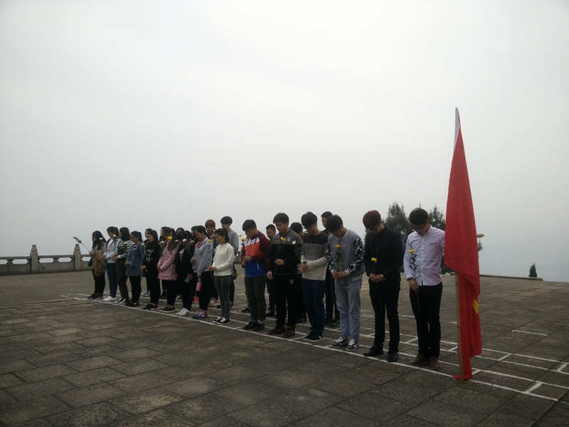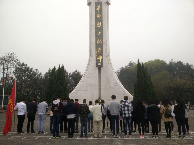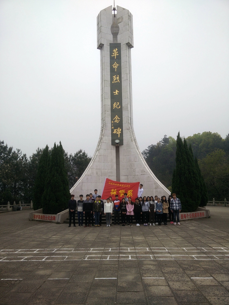 本网讯 2016年清明节来临之际,为缅怀革命前辈激情燃烧的岁月,激发党员、共青团员和大学生们的的爱国热情,加强爱国主义教育,促进大学生精神文明的建设,并引导大学生牢固树立社会主义核心价值观。3月30日上午,林学系两委会组织同学前往九峰山烈士纪念碑开展清明节祭扫活动,大家怀着对革命先烈无比崇敬的心情,在烈士纪念碑前宣誓默哀,并向革命烈士纪念碑鞠躬致敬、献花以表达对革命先烈缅怀之情,现场气氛庄严穆肃。