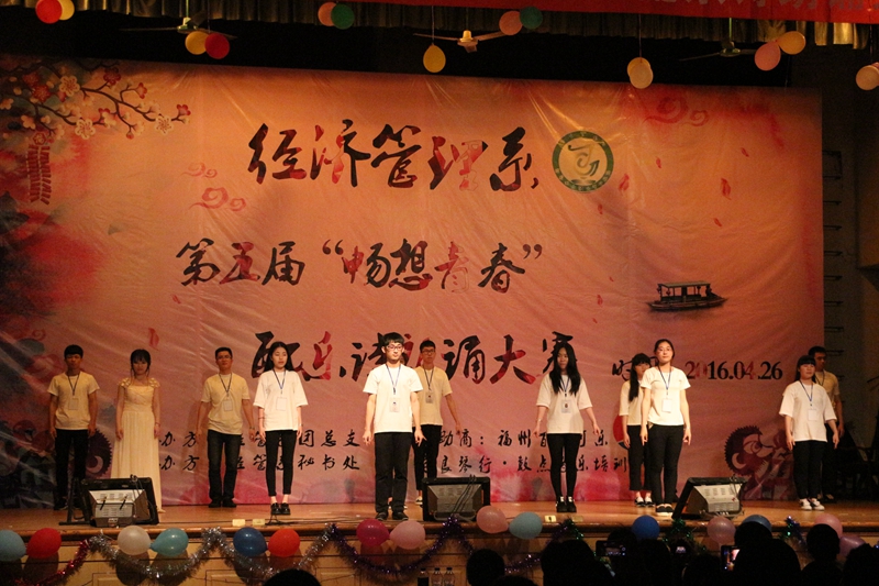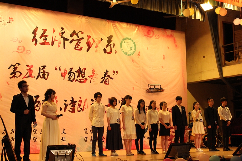 本网讯 为进一步引导广大学生诵读红色经典诗文,充分发挥红色经典诗文教育人、引导人、鼓舞人和激励人的作用,2016年4月26日,经济管理系在学院天麟校区礼堂举办迎五四红色经典配乐诗朗诵比赛。本次活动经过层层选拔,历经初赛和复赛,最终由来自经济管理系各年级各专业的十组选手进入决赛。经济管理系党政领导及相关老师出席活动并担任评委。