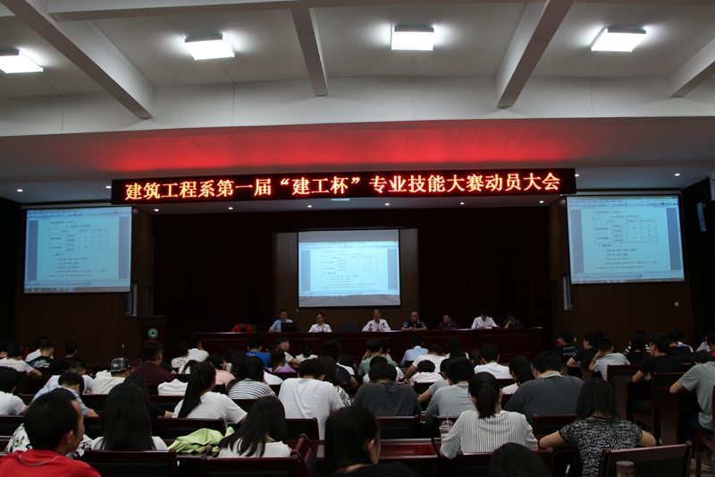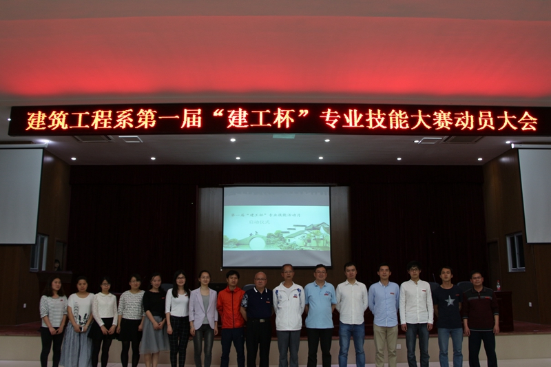 本网讯 4月27日晚,建筑工程系第一届“建工杯”专业技能活动月启动仪式在江南校区四楼礼堂召开。建筑工程系主任郑金兴教授、系党总支书记王云彪老师、系副主任彭忠伟老师及各专业技能大赛教师出席会议。