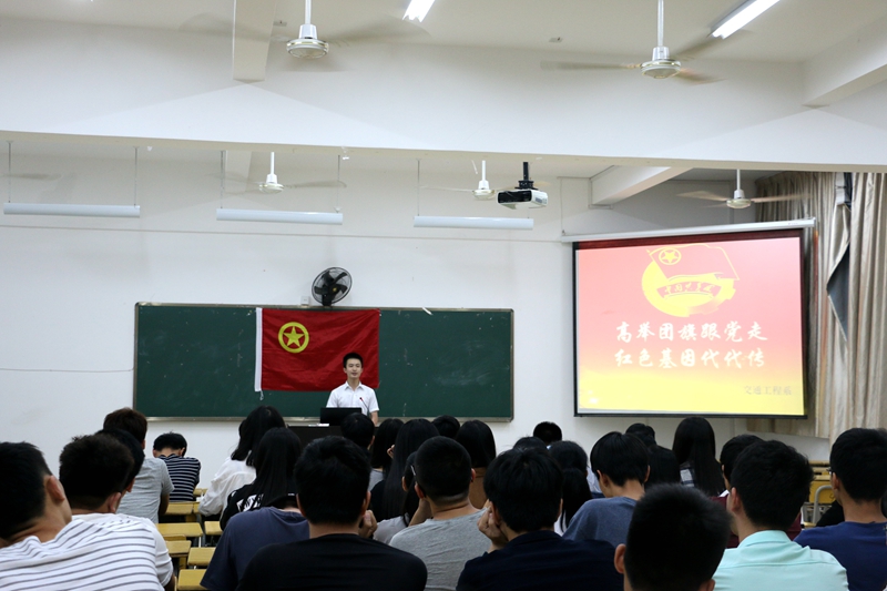 交通工程系两委会于4月28日晚7:30在江南校区实训四410开展了重温入团宣誓活动,各班级团干、两委会各部门干事共100多名共青团员参加了活动。本次活动严格按照新团员入团宣誓仪式程序开展,在场的新老团员在庄严的团旗下共同宣誓、共唱团歌。这是一堂生动的爱国主义教育课,激发了每位共青团员的光荣感和责任感。相信在今后的学习和生活中,共青团员们会把入团誓词时刻铭记于心并转化为行动,成为激励他们做好新一代优秀青年的引路灯。