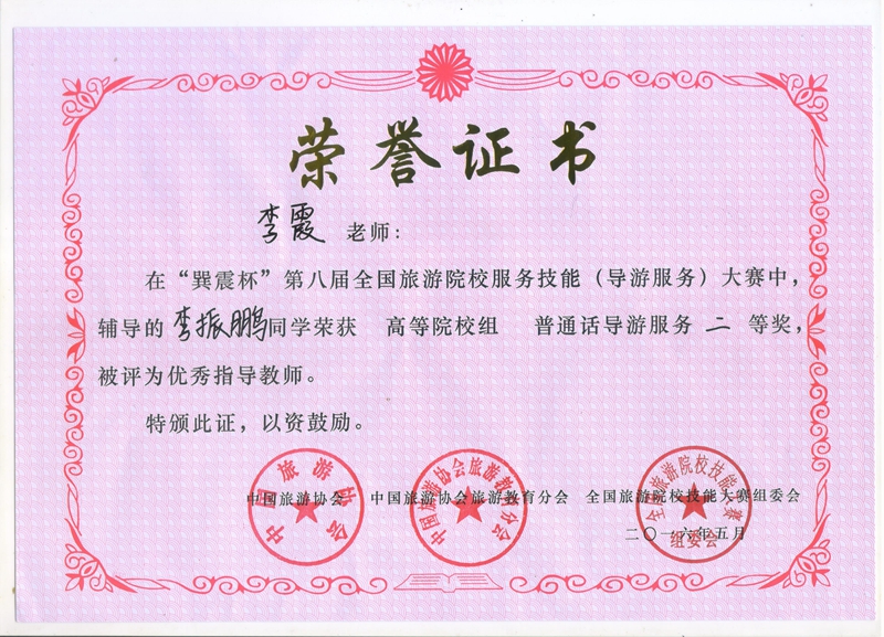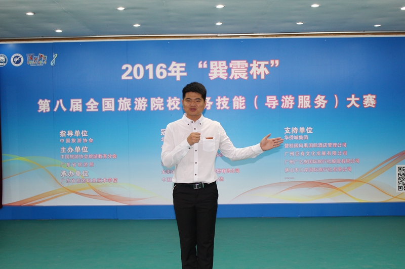 本网讯 5月15日,在刚刚结束的中国旅游协会旅游教育分会和广东省旅游局联合主办的“巽震杯”第八届全国旅游院校服务技能(导游服务)大赛中,由我院林学系李霞老师指导的旅游管理1408班李振鹏同学荣获“高等院校组普通话导游服务”二等奖。