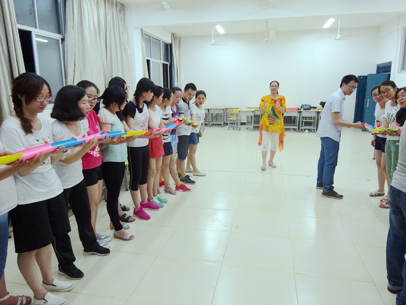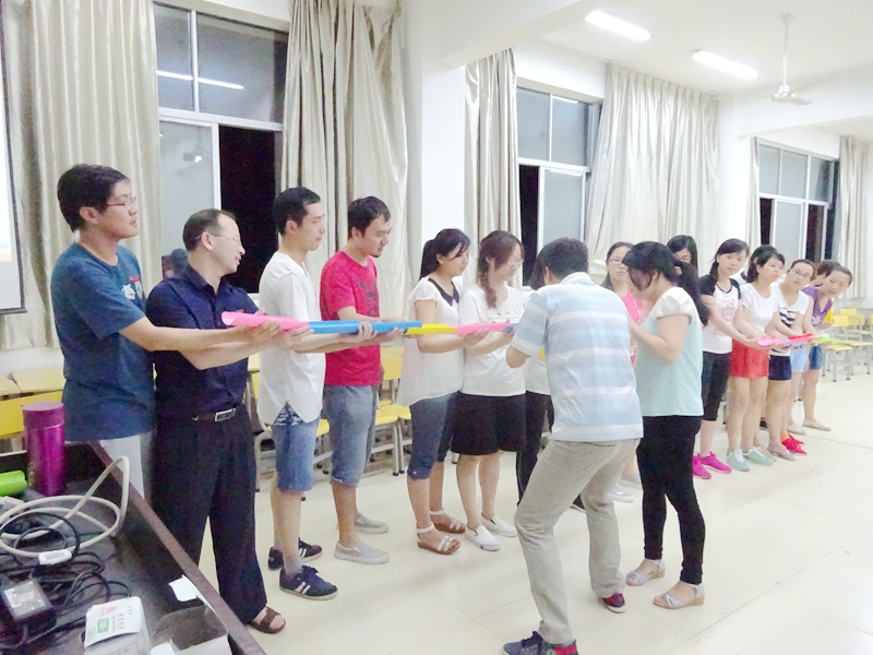 本网讯 为加强我院辅导员队伍建设,促进辅导员队伍的良好沟通,提升辅导员的心理调适能力。根据学院党校第一期辅导员培训班课程安排,5月31日晚上,心理咨询中心主任陈红英给辅导员培训班全体学员开展了心理素质拓展活动。我院约40名专兼职辅导员参加了本次活动。