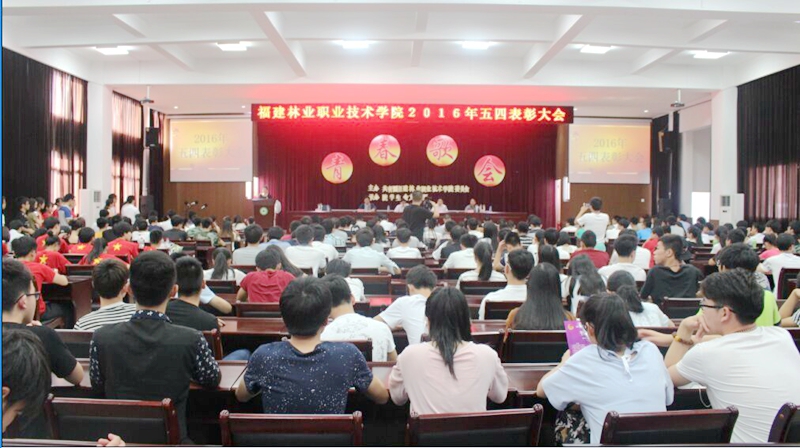 本网讯 为纪念五四运动97周年、建团94周年、共产党成立95周年,院团委决定表彰一批先进集体和个人。6月7日下午4时,由共青团福建林业职业技术学院委员会主办的2016年五四表彰大会在江南校区礼堂隆重举行。院党委书记徐志荣,院长郑郁善,党委副书记陈洪尧,院长助理郭先根及有关职能部门领导、系党总支书记、副书记、学生科长、团总支书记、辅导员、青年团员代表共400余人出席大会。大会由院团委副书记李霞主持。