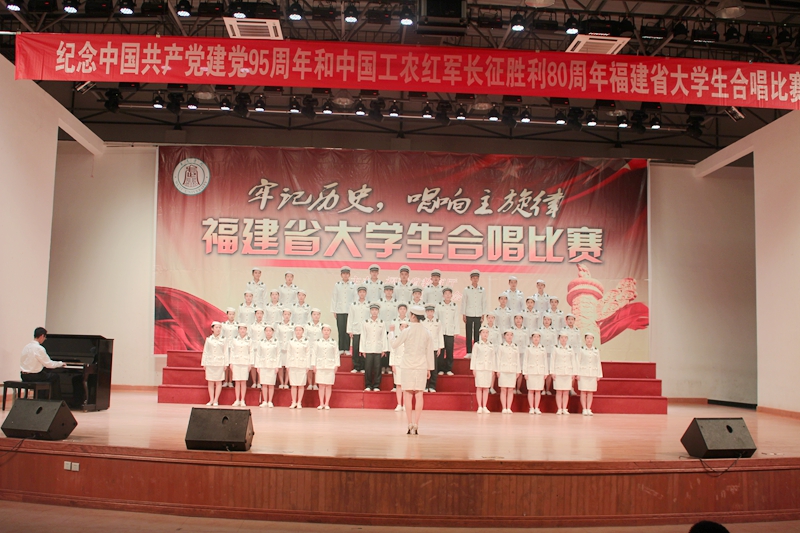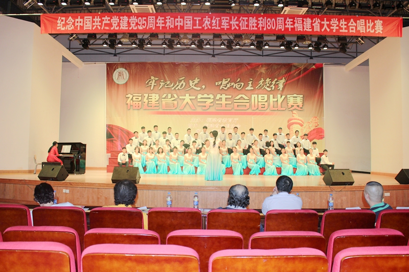本网讯 6月12日晚,由福建省教育厅主办的纪念中国共产党建党95周年和中国工农红军长征胜利80周年福建省大学生合唱比赛南平地区(武夷学院专场巡评活动)在武夷学院学生活动中心报告厅举行。武夷学院2支队伍、我院1支队伍与闽北职业技术学院1支队伍参加此次巡评活动。
