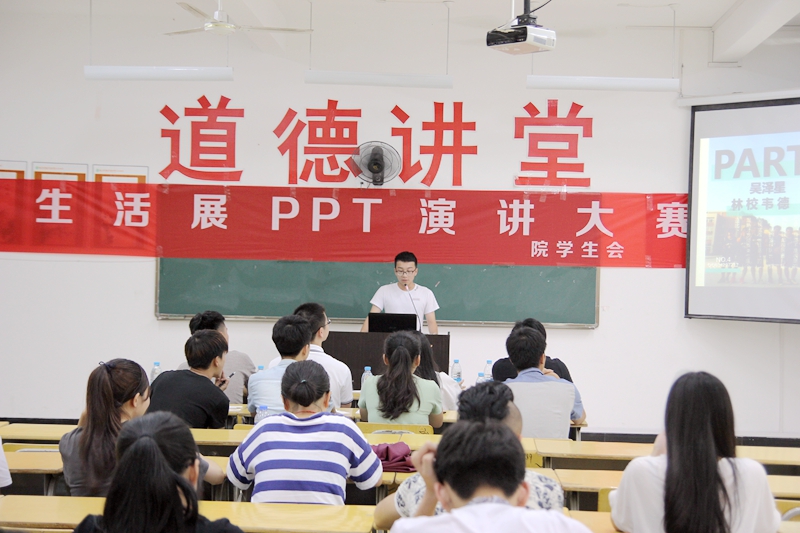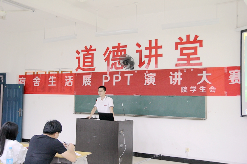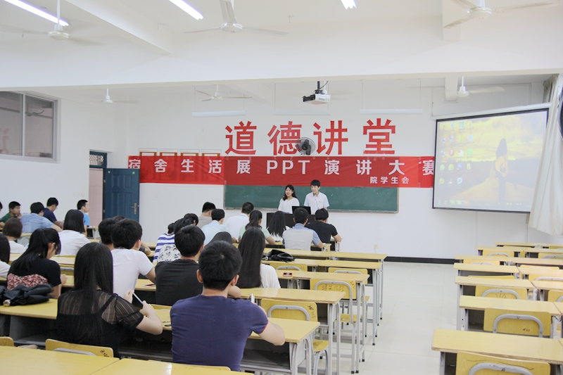 本网讯 6月14日下午14:30,宿舍绿色文化节——PPT演讲大赛和宿舍微电影大赛在江南校区实训二310教室举行。学生处吴旻老师、学生会副主席、各系学生会主席及学生会各部门负责人到场担任评委。