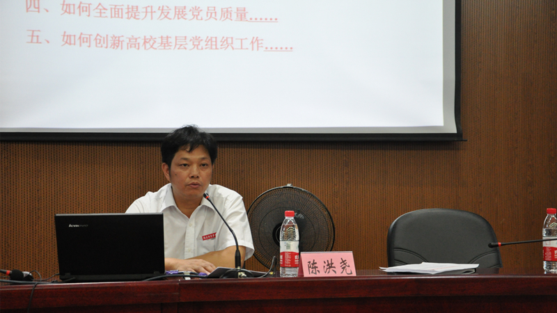 本网讯 为进一步深入开展“两学一做”学习教育,切实加强学院基层党组织建设,激发基层党组织的生机和活力,根据学院党校课程安排, 7月5日下午,学院党委副书记陈洪尧在江南校区礼堂为党校党务干部班、科级干部培训班、辅导员培训班的全体学员作了《高校基层党组织建设的实践与思考》专题讲座。
