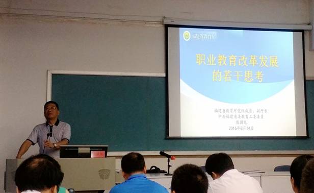 开班式后,陈国龙副厅长作了以“职业教育改革发展的若干思考”为主题的首场讲座。紧接着,福建省委党校、福建行政学院公务员培训处林永煌副研究员为我院参训学员组织了一场“团队组建与破冰”的拓展活动。下午,原福建省政府发展研究中心副巡视员、林永健研究员作了题为“新常态下福建经济发展与自贸区建设”的专题讲座,第四组学员王昉老师主持了此次讲座。为了充分调动学员们的积极性,体现此次培训班的创新性和展示学员们的风采,我们每次讲座都由不同的学员来主持,并由每个小组负责撰写一期学习简报。晚上,学员们分为4个小组,围绕今天讲座的内容开展了热烈的讨论。